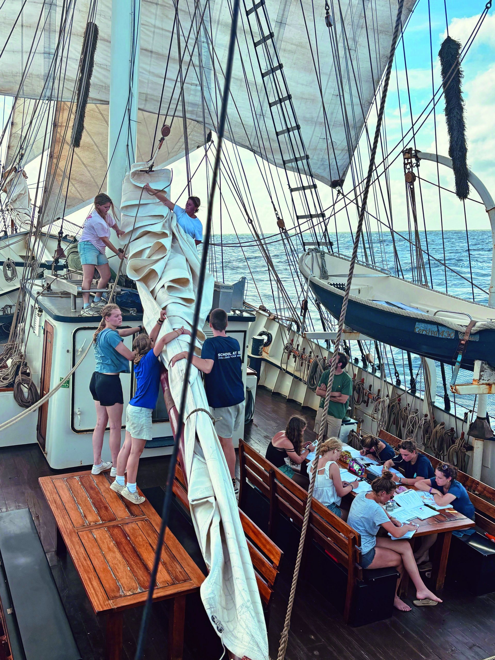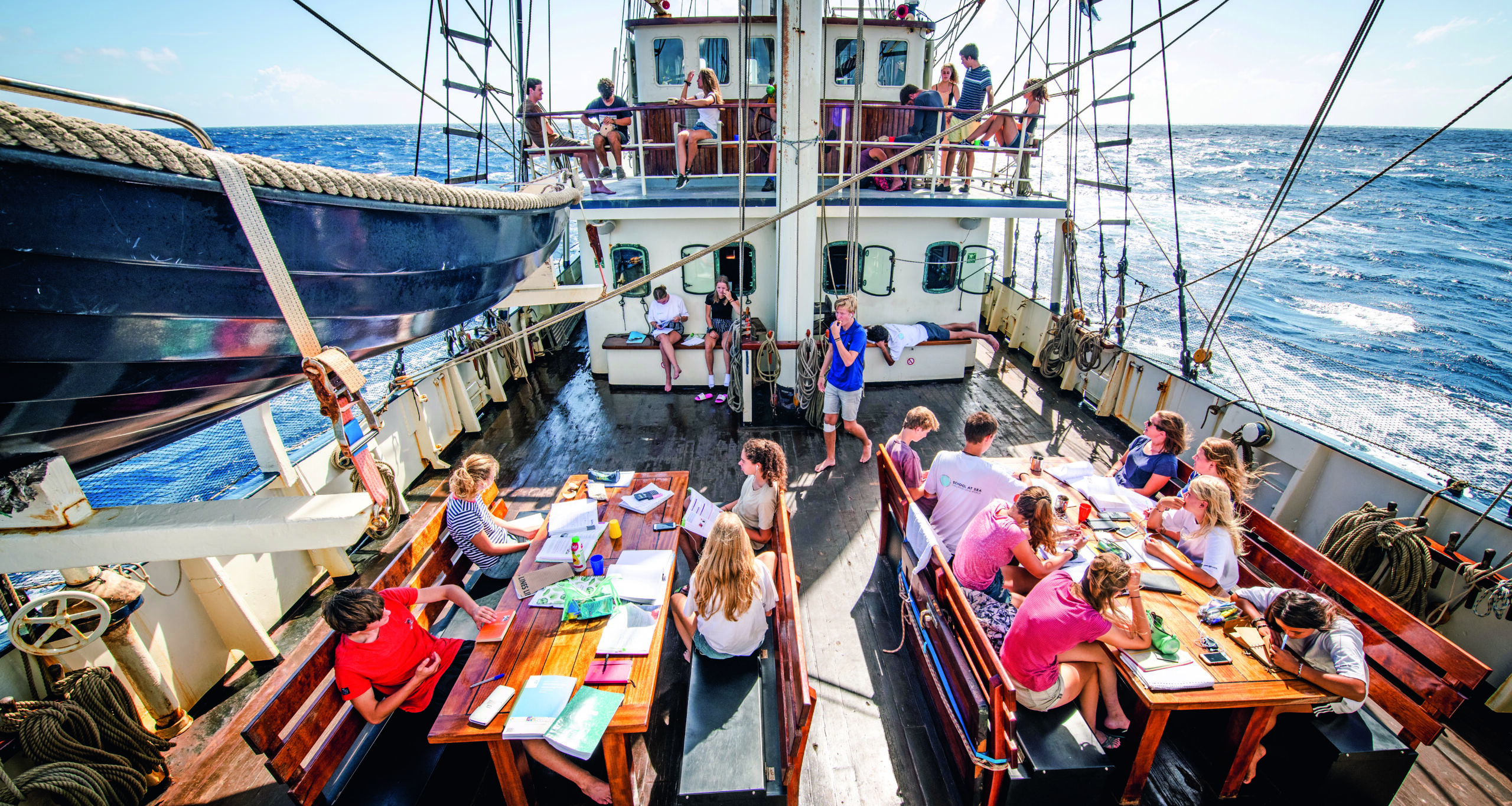Het programma van School at Sea is gericht op jongeren van ongeveer 15 tot 17 jaar oud. Volgens Monique Touw kunnen ze op deze leeftijd de vaardigheden en inzichten meenemen in de keuze voor wat ze na de middelbare school willen doen. Volgens haar gaat er elke keer een heel gemêleerde groep mee. ‘We hebben er altijd een paar jongeren met een pestverleden bij die graag aan hun zelfvertrouwen willen werken. Daarnaast een paar hoogbegaafde jongeren die zichzelf willen uitdagen. Maar de grootste groep bestaat uit jongeren die op zoek zijn naar meer dan alleen maar in een klaslokaal zitten. Zo maken jaarlijks ongeveer dertig jongeren een half jaar een reis op ons zeilschip. Onderweg leven ze samen, werken ze aan boord en maken ze hun schoolwerk.’